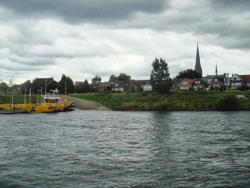arnhem 28 juli gaan we door voor het laatste stukje van Wageningen voor het laatste stukje naar Arnhem. De Rijn wordt steeds mooier, de oevers aan de Noordzijde worden hoger en hoger, de zuidelijke begrenzing van de Veluwe. Dat de rivier kostbare grondstof kan leveren kun je nog zien aan de vele oude steenfabrieken, die nu mooie plaatjes uit een ver verleden opleveren. Bij Driel komen we bij de volgende stuw, die voorlopig ons laatste obstakel is. Het is er redelijk druk met pleziervaart. Ook hier is het verval behoorlijk, bijna 3 meter. Na de sluis komen we onder de rook van Arnhem, waar we voorzichtig het haventje indraaien waar Toos, een hartsvriendin van Noud’s zus Alice, haar woonarkje heeft liggen. Het is er niet diep, maar het moet kunnen, we zijn al eerder een keertje naar haar toe geweest om te verkennen en om te peilen. En het lukt! We liggen hier op een idyllisch plekje, een beschermend dijkje tussen ons en de Rijn met zijn scheepvaart. Toch is hier achter het dijkje af en toe flinke zuiging als er weer zo’n grote jongen voorbij komt. Als we uiteindelijk goed vast liggen valt het weer met bakken uit de hemel. Voor volgende week is er mooi zomerweer voorspeld. We zullen zien, maar als het komt moeten we dagelijks de waterstand in de gaten houden. We hebben 30 tot 40 cm onder de kiel, en als het gaat zakken moeten we, helaas, vertrekken zolang we dat nog kunnen. Maar we hopen tot eind Augustus hier te kunnen blijven.